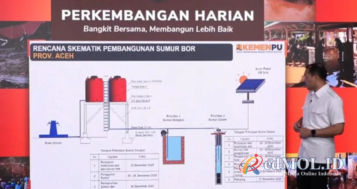 Ia menambahkan, hingga saat ini pihaknya telah membangun 73 sistem penyediaan air minum di Aceh, 46 sistem di Sumatera Utara, dan 60 sistem di Sumatera Barat. Langkah ini dilakukan untuk menopang kebutuhan sekitar 160 ribu warga yang terdampak kerusakan jaringan air bersih akibat banjir.