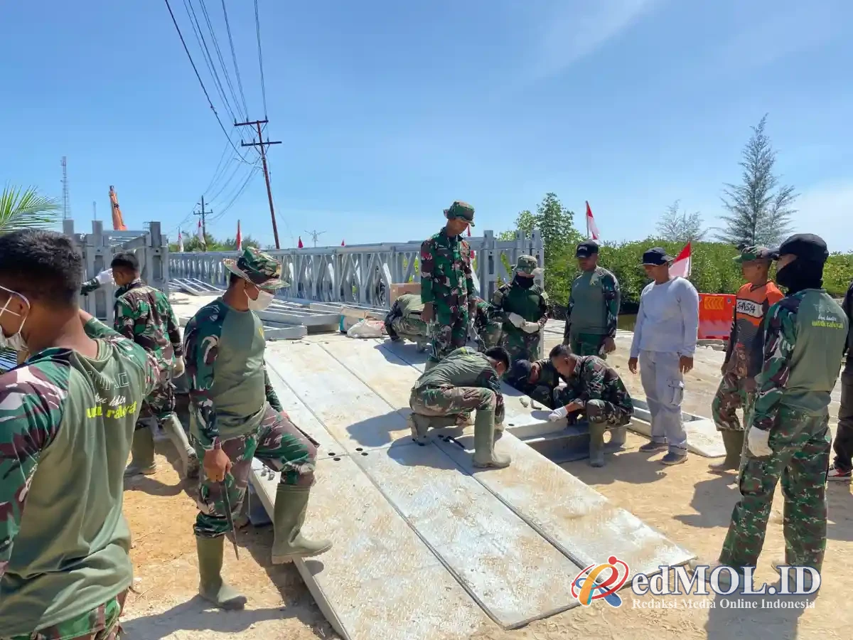 Meski bekerja di bawah terik matahari, para prajurit tetap menunjukkan semangat tinggi. Mereka tak kenal lelah demi memastikan akses transportasi warga segera pulih. Kehadiran jembatan ini sangat dinantikan masyarakat karena menjadi jalur vital penghubung antarwilayah.